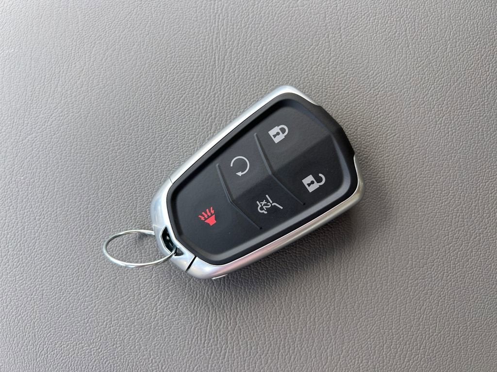 - Opens or closes when the system senses the key fob and the driver extends their foot under the left-hand side of the rear bumper over an image of the Cadillac Crest projected under the vehicle