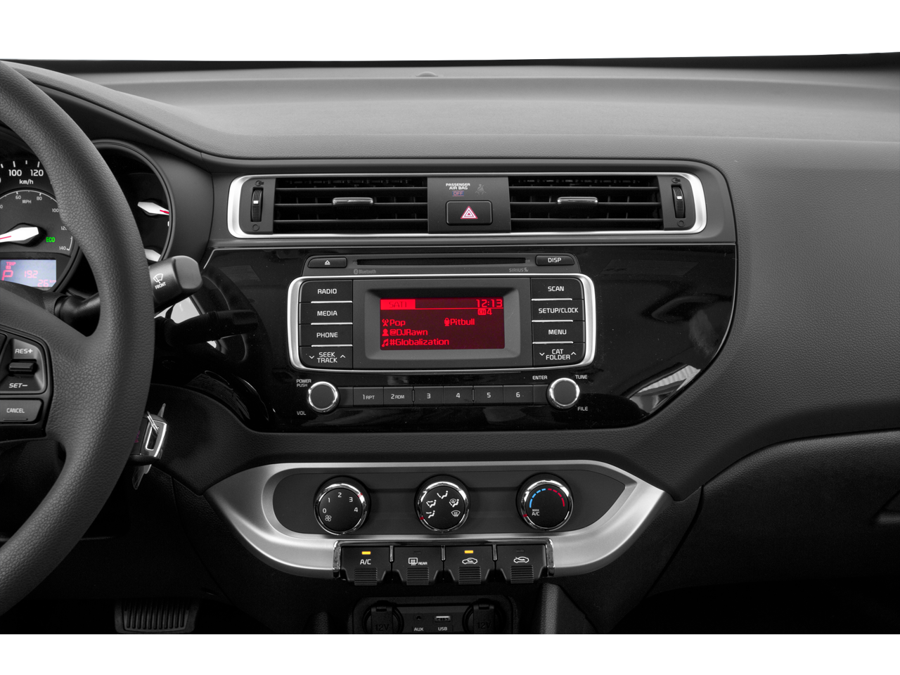 Step inside and experience the thoughtful design of the Rio LX. Enjoy the convenience of Air Conditioning, Power Steering, Steering Wheel Mounted Audio Controls, and a CD Player with AM/FM Radio and SiriusXM. The Woven Cloth Seat Trim and Split Folding Rear Seat provide both comfort and versatility, while the Carpet Floor Mat and 15 Steel Wheels with Full Covers add a touch of refinement.