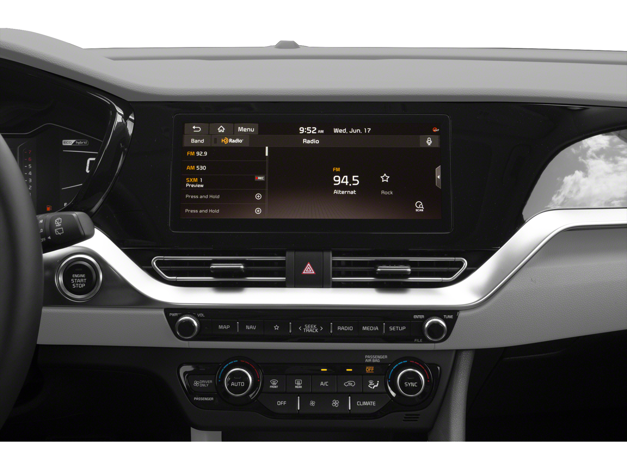 - Radio: AM/FM/HD/SiriusXM -inc: 6-speaker audio system w/1 USB input, 8" display audio 2.0V (w/modem) w/touchscreen color display, wireless Android Auto and Apple CarPlay smartphone integration, Bluetooth® wireless connectivity w/voice recognition, UVO Link and Telematics