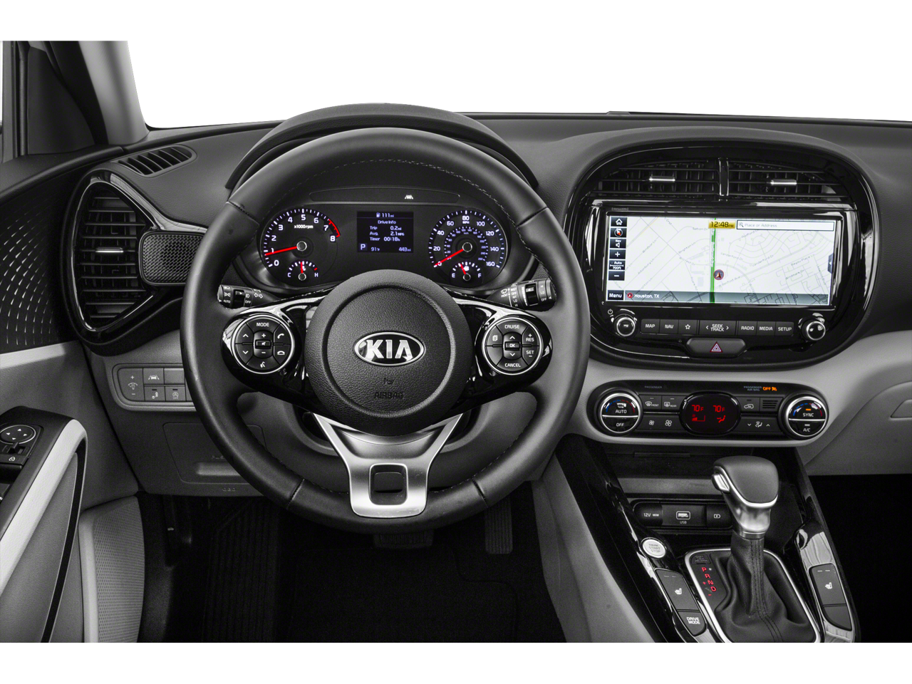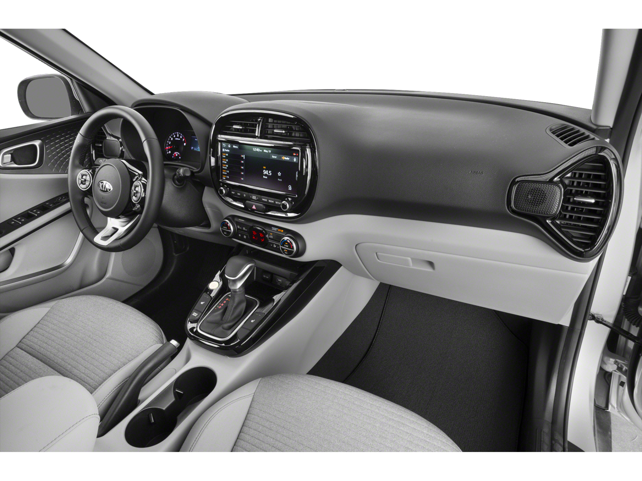 Step inside the 2021 Kia Soul EX, and you'll be greeted by a well-appointed and comfortable interior. The premium cloth seating surfaces are both durable and stylish, while the heated front bucket seats provide added comfort on chilly days. The leather-wrapped steering wheel and shift knob add a touch of sophistication, and the power driver's seat allows for easy adjustments to find your perfect driving position.