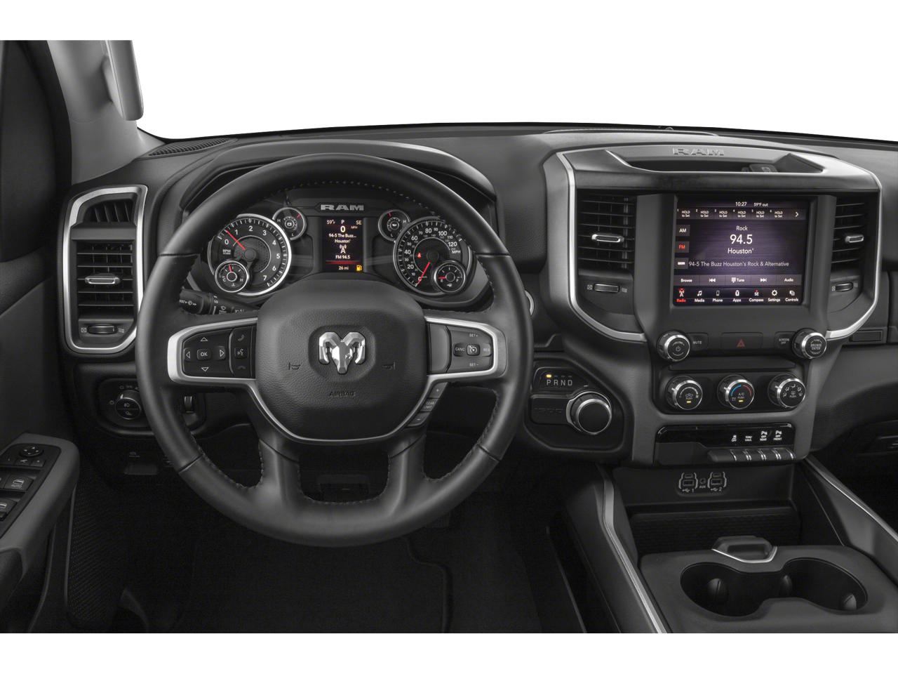 The Big Horn Level 1 Equipment Group adds even more convenience and comfort features, including power-adjustable pedals, a power-sliding rear window, and a universal garage door opener. The rear power sliding window and 2nd-row in-floor storage bins provide exceptional versatility, ensuring you can adapt to any task or adventure.