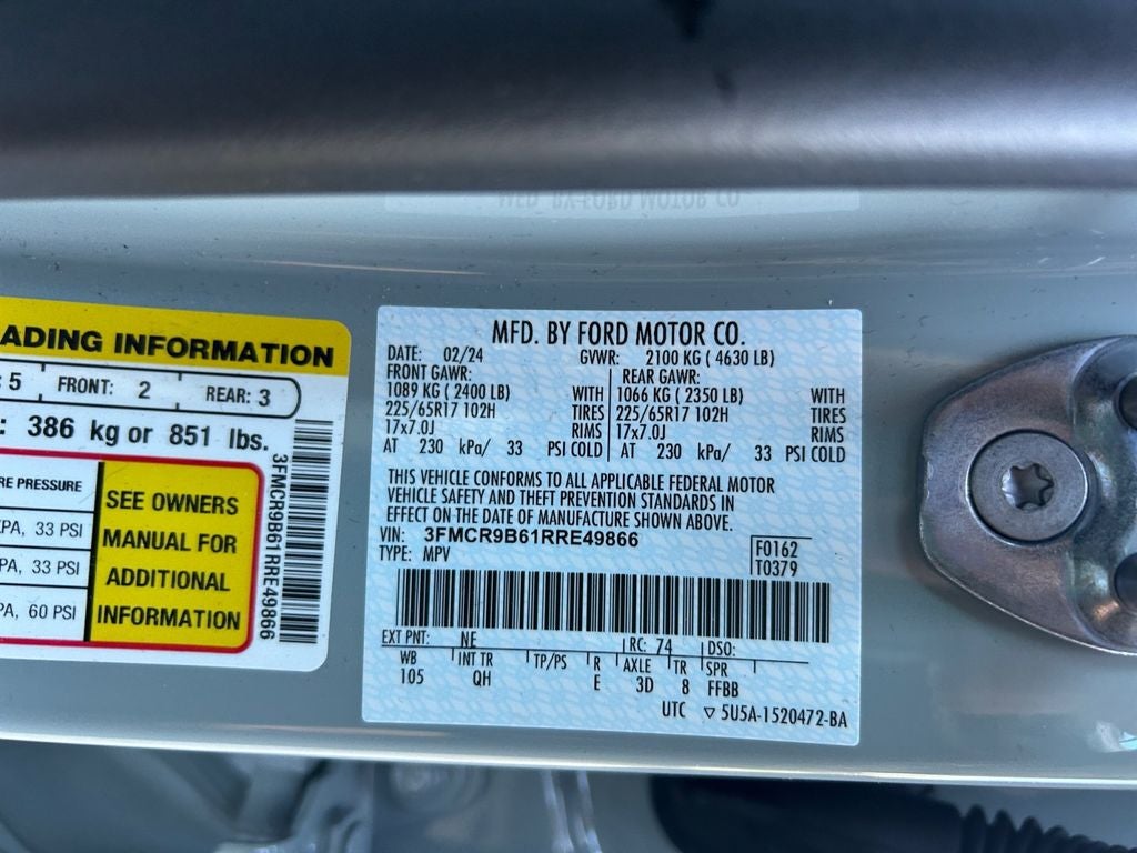 Step inside and discover a cabin that seamlessly blends comfort and technology. The SYNC 3 communications and entertainment system keeps you connected, while features like automatic temperature control, power windows, and steering wheel-mounted audio controls ensure a premium driving experience. The unique cloth front bucket seats provide exceptional support and style, while the split-folding rear seat offers versatile cargo space.