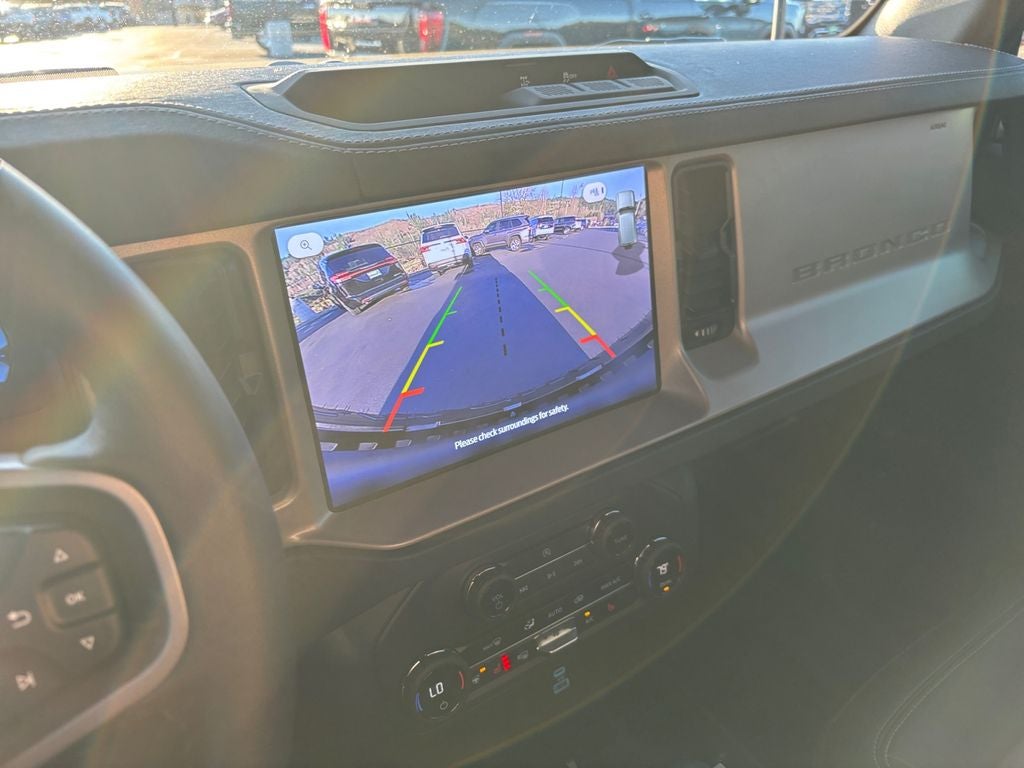 Exterior styling is equally impressive, with the Bronco's bold, rugged design and 18-inch bright machined aluminum wheels creating a commanding presence on the road. The Shadow Black-painted hard top and front fog lights further enhance the Bronco's distinctive look.