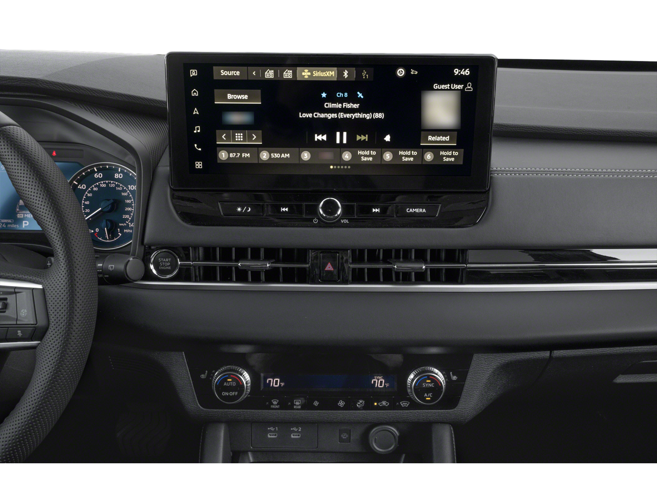 - Radio: AM/FM 12.3" Navigation w/Smartphone-Link -inc: wireless Apple CarPlay and Google Android Auto, Mitsubishi Connect w/5-year safeguard trial and 1-year remote services trial (mobile app enrollment required), HD radio, Bluetooth® wireless technology, steering wheel controls for phone, audio and voice recognition, 2 USB-C ports, SXM all access and SXM traffic & travel link w/90-day subscription and dynamic sound Yamaha premium system w/8 speakers