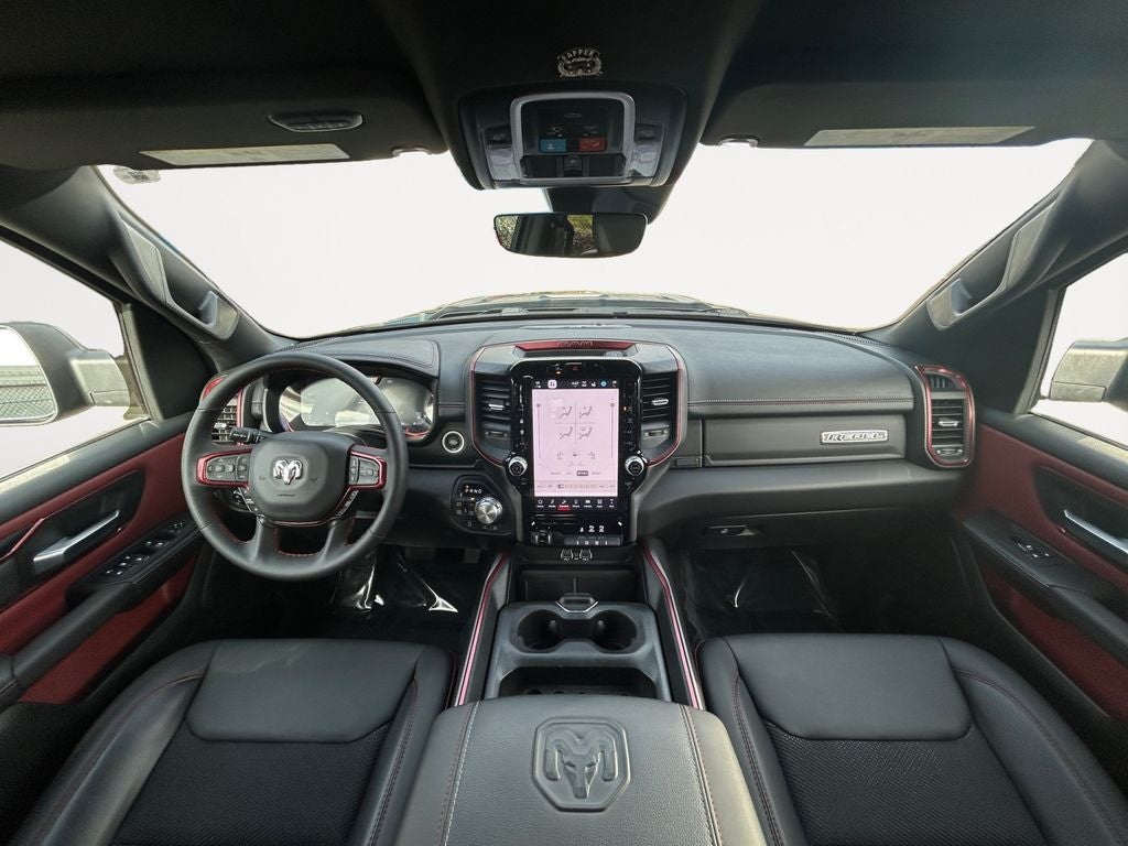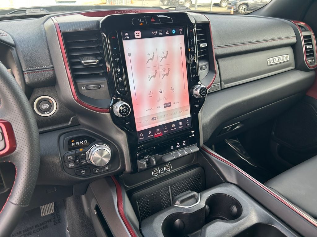 Inside, the 2026 Ram 1500 Rebel pampers you with premium amenities, including a 12-inch Uconnect 5 Navigation system, Wireless Charging Pad, and Heated Steering Wheel. The Cloth/Vinyl Bucket Seats provide all-day comfort, while the Power Adjustable Pedals and 8-Way Power Driver Seat ensure a perfect driving position.